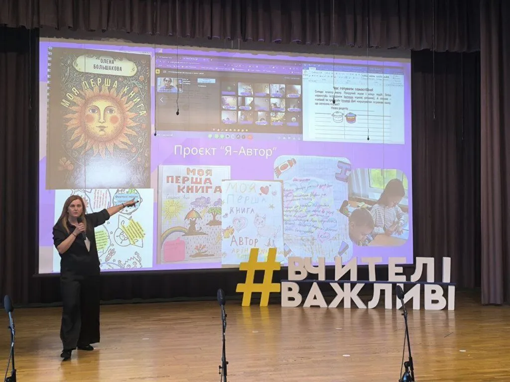 Торік Олена Большакова проводила майстерклас зі сторітелінгу для вчителів Полтавської області, а цьогоріч презентувала свій курс на Global Teacher Prize Ukraine.