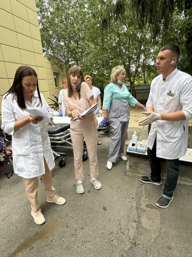 Одразу після прильоту пацієнтів, які перебували в медзакладі на стаціонарному лікуванні та могли ходити, виписали та відпустили, люди покинули його протягом 20 хвилин. Так звільнили ліжка для поранених внаслідок обстрілу.