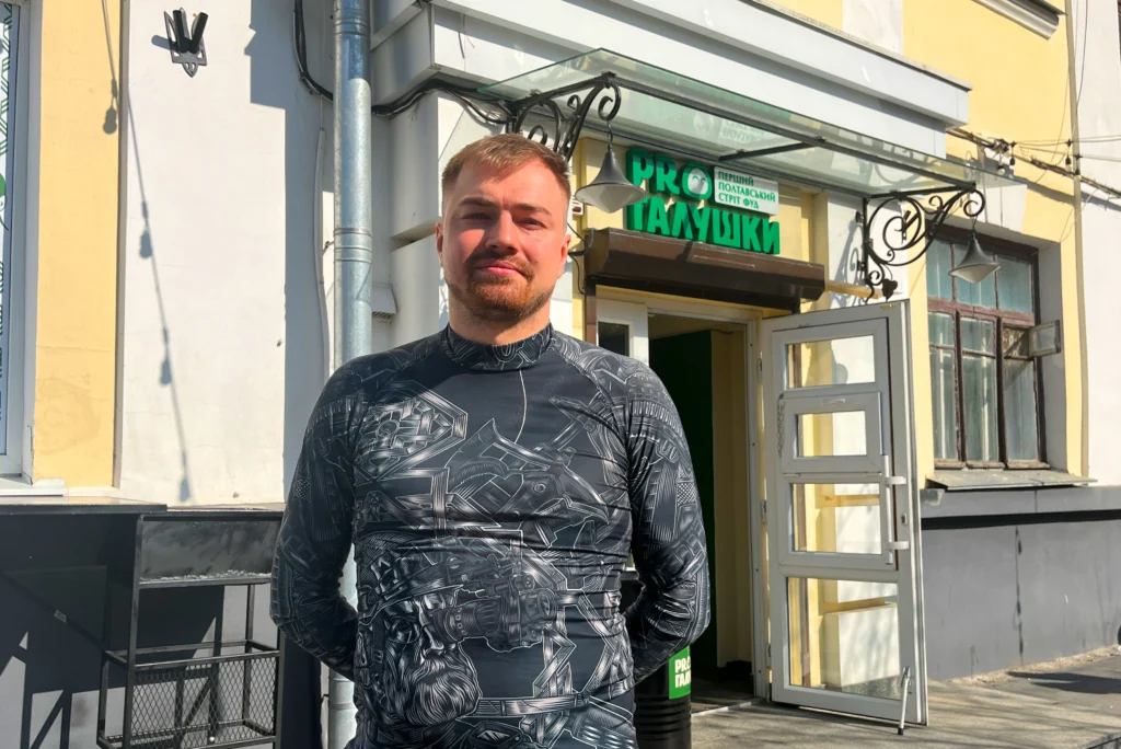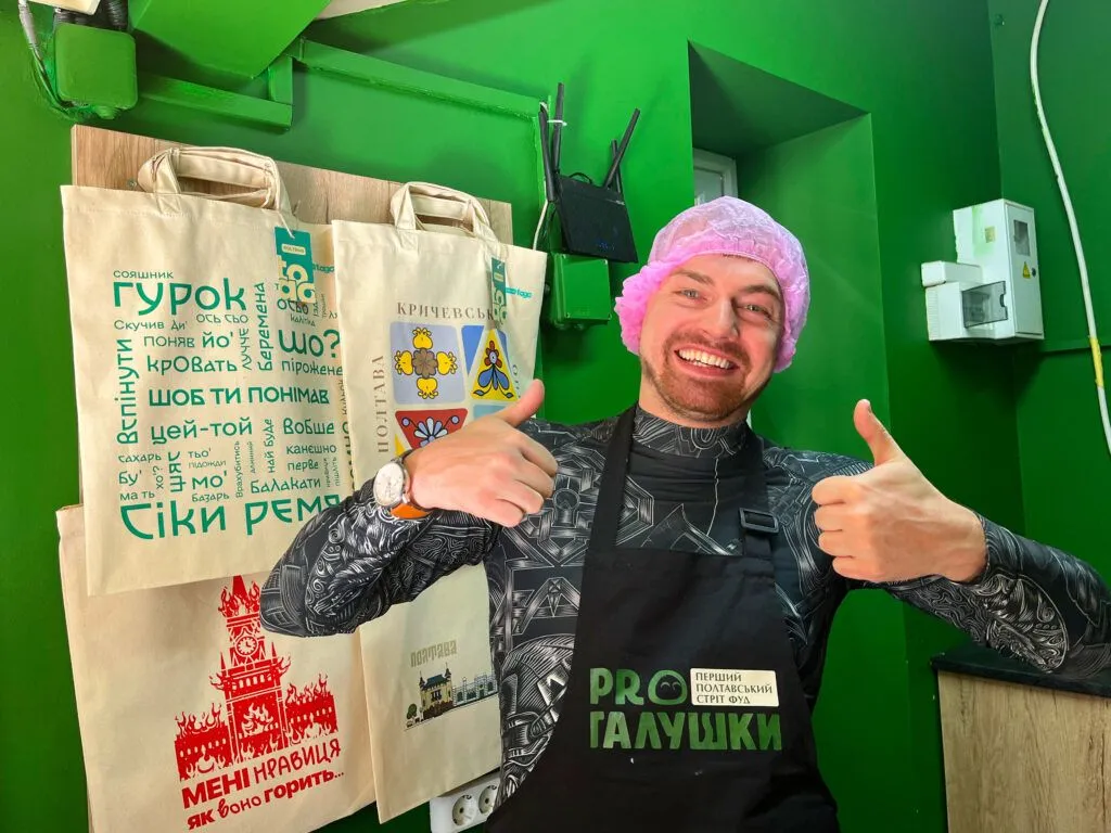 Вулиця Соборності, 2. Самісінький центр Полтави, де на одній вулиці зібрані десятки різних закладів. Саме тут ветеран Артем Ліфрідов відкрив власний бізнес – продають галушки, але у форматі «стритфуд». Чоловік каже, що ідеєю надихнувся після того, як відвідав ресторан «Полтава» в Києві: