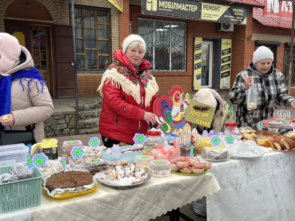 На іншому кінці ярмарку смаколики продають вихователі дитячого садочка «Золотий півник». Вихователька Наталія Приймак розповіла, що цього року батьки дітей дуже активно взяли участь, стіл вийшов багатий.