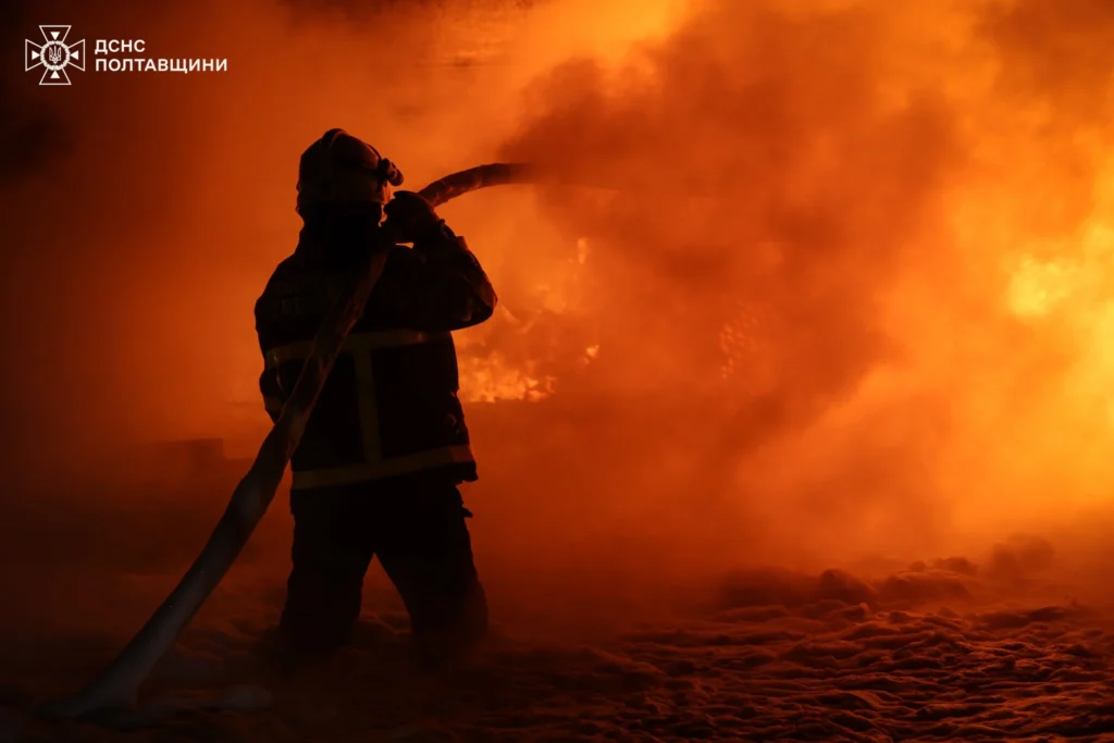 У ДСНС Полтавщини уточнили, що ворог атакував промислові об’єкти. Травмованих і загиблих немає. Ліквідовували пожежі 195 рятувальників та 60 одиниць техніки.