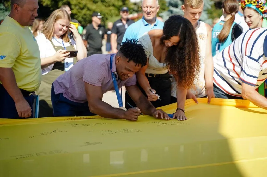 Урочистості відбулися 16 серпня на Білій альтанці. Олімпійці, паралімпійці, тренери, а також амбасадори й лідери галузі фізичної культури підписали найбільший державний прапор Полтавщини, а переможець Олімпіади Олександр Хижняк символічно передав вірчу грамоту і прапор, який був з олімпійцями на змаганнях, представнику паралімпійської команди Ярославу Денисенку. Адже незабаром спортсмени змагатимуться на Паралімпіаді – 2024 в Парижі.