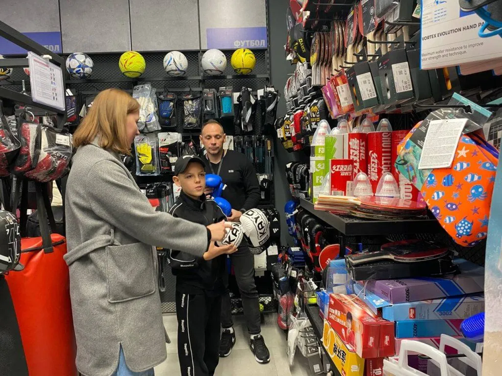 Наприклад, Даня розповів, що любить бокс, а тому спочатку пішов до спортивного магазину. Там він придбав новеньку пару боксерських рукавиць (як сказала його опікунка Анна, вже четверту, цього разу в улюбленому кольорі – білому), а ще спортивну стійку для тренувань.