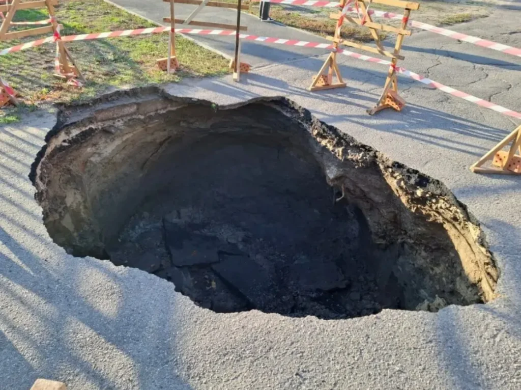 Перше провалля виникло в жовтні 2024 року. Тоді на місце аварії прибула техніка водоканалу, яка мала засипати яму. Проте під екскаватором також провалилася земля, а він опинився у проваллі. Щоб дістати його залучили спецтехніку. Відтоді ділянка залишається огородженою, а комунальники проклали тимчасову каналізаційну насосну станцію та напірний каналізаційний колектор, по якому цілодобово перекачують стічні води.