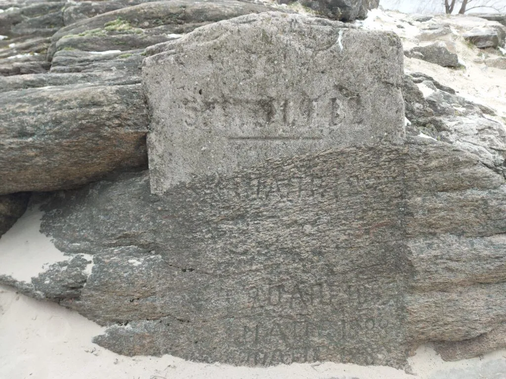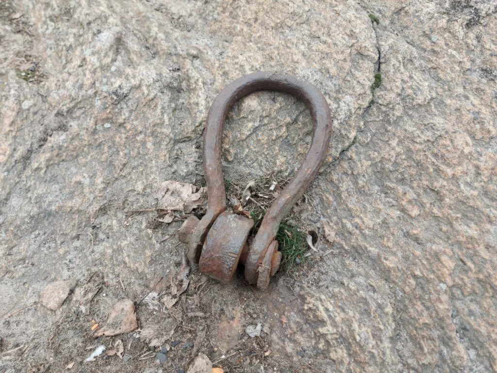 На скелі й досі збереглося кільце, до якого кріпили швартувальні троси від барж і суден.
