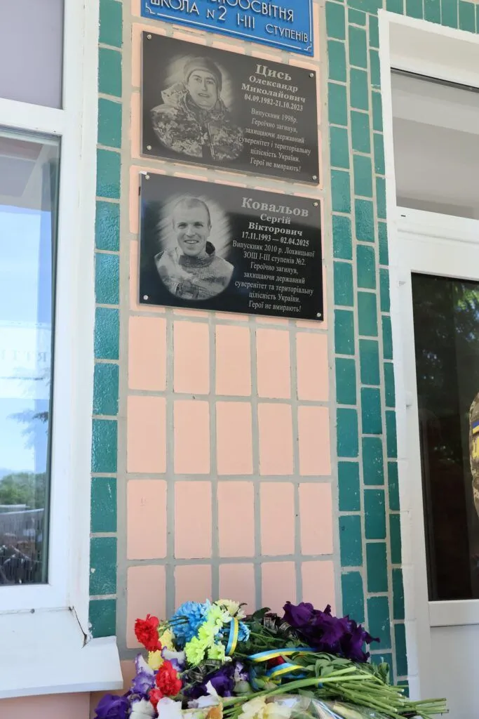 На фасаді Лохвицької школи №2 відкрили три меморіальні дошки воїнам, які загинули у боротьбі з окупантами на Донецькому напрямку.