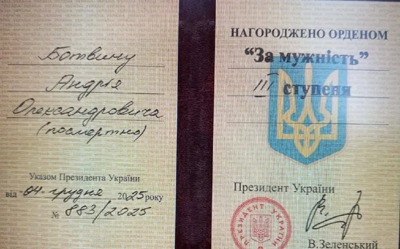 У Сергіївській громаді родині загиблого захисника Андрія Ботвини передали орден «За мужність» третього ступеня посмертно.