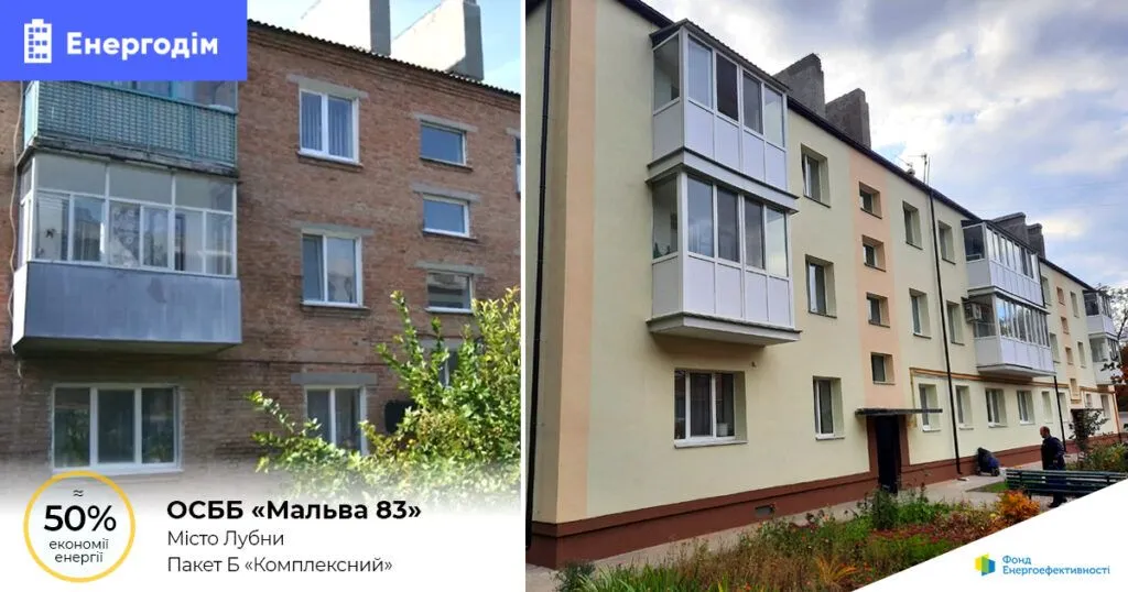ОСББ «Мальва 83»: до і після. Фото: eefund.org.ua