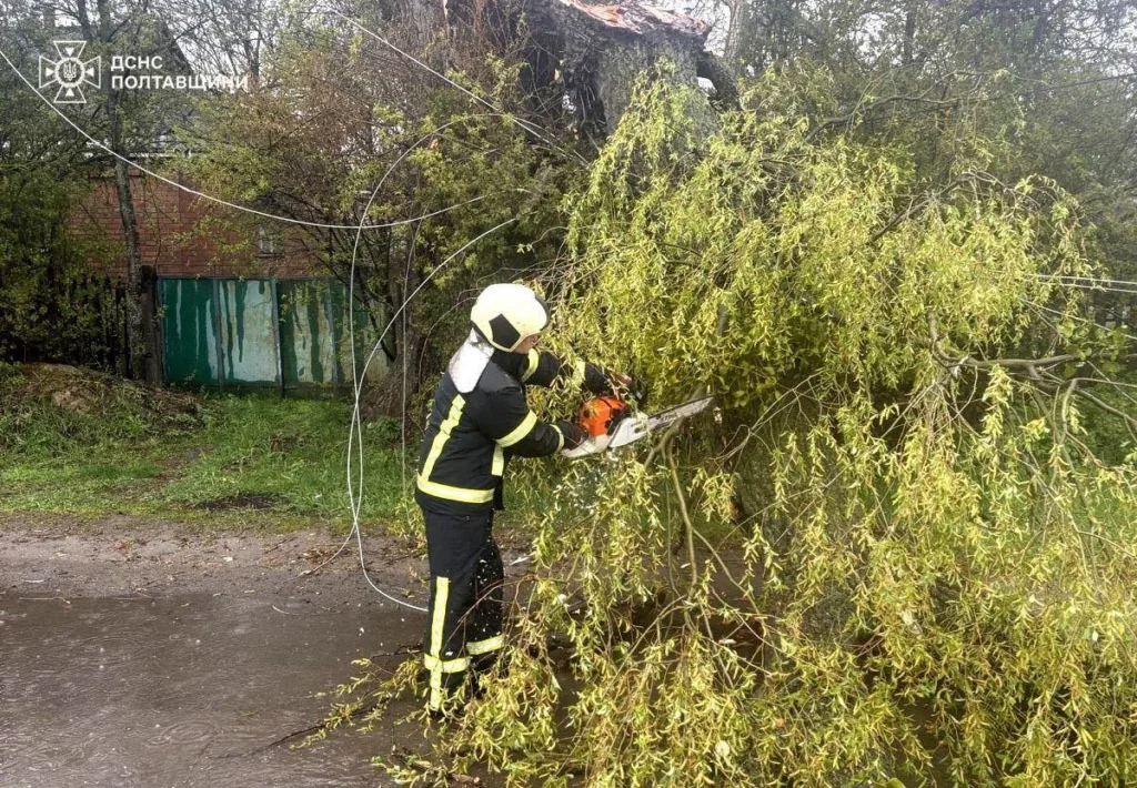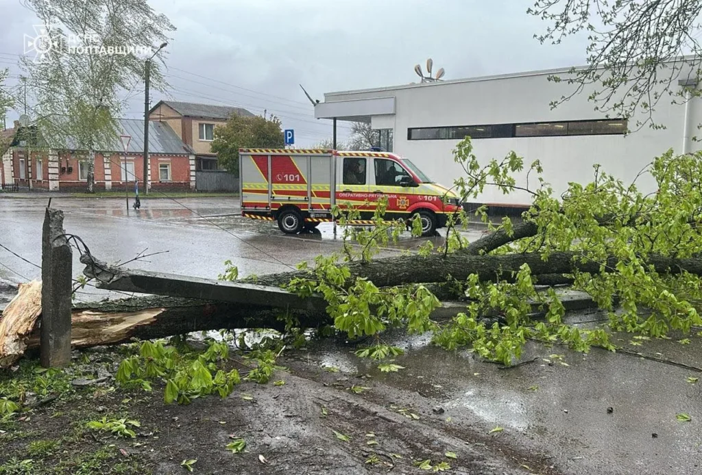 26 квітня шквальний вітер спричинив перебої електропостачання, падіння дерев та пошкодження будівельних конструкцій, повідомила пресслужба Головного управління Державної служби з надзвичайних ситуацій у Полтавській області.