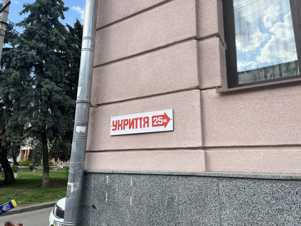 Перша точка – Палац дитячої та юнацької творчості. Про те, що у закладі облаштоване укриття, попереджує табличка, розміщена біля вхідних дверей. На ній також вказаний номер чергового, що відповідальний за ключі до сховища. Втім на дзвінок відповіді не дочекалися, а тому одразу проходимо всередину самої будівлі.