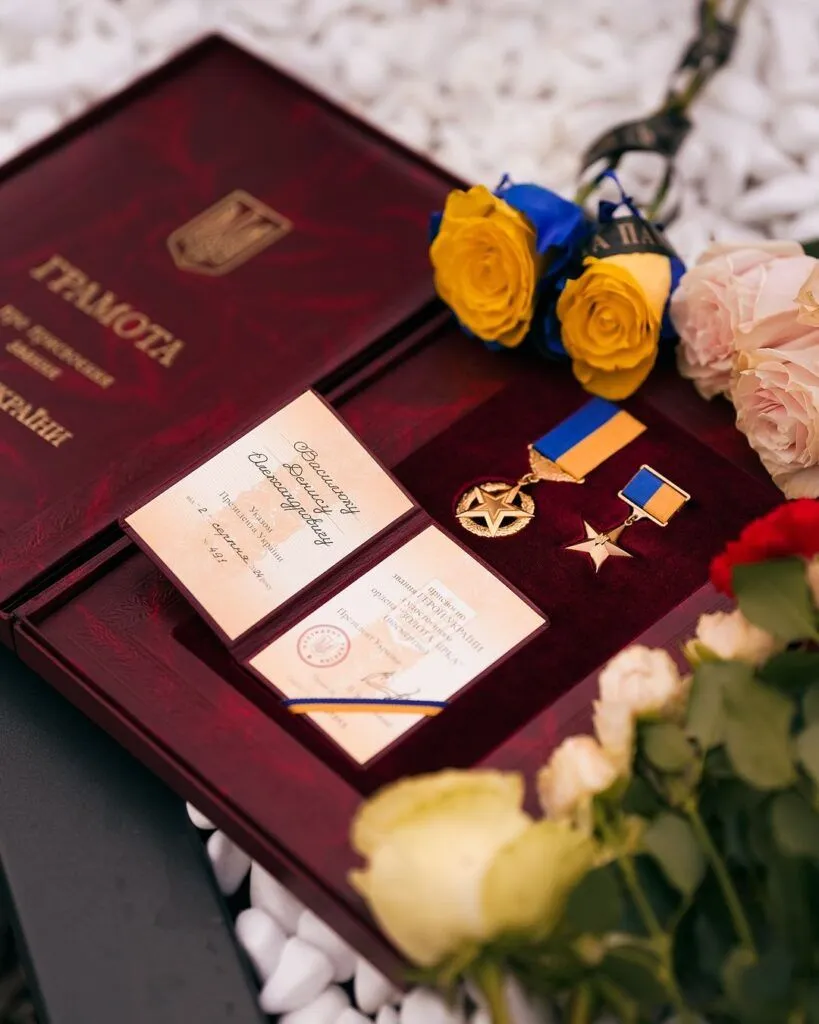 «Денис дійсно гідний цього звання, на жаль, посмертно. Він до останнього подиху обороняв наше небо, наше українське небо. І, крім того, що він був відважним і незламним пілотом, я хочу сказати, що він був дуже доброю, світлою та щирою людиною, прекрасним чоловіком, з яким ми були разом 9 років. Був люблячим сином турботливих батьків, справжнім братом та справжнім другом», – так підписала фото Владислава.