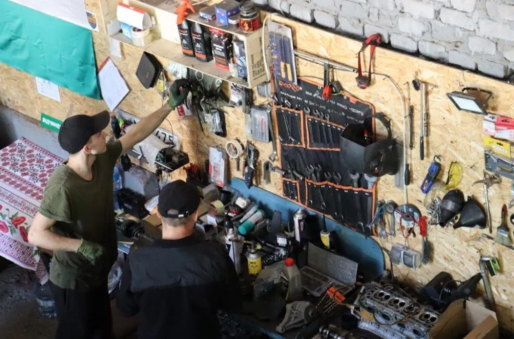 – Мій захисник багато розповідав, як би хотів зробити все на СТО, – ділиться підприємиця. – Казав: «От, наприклад, приїхала людина. Тут у її машині потрібно зробити ремонт ходової. Потім перегнали авто в сусідній бокс, на розвал-сходження. На місці “перевзули” чи ще якісь послуги надали». Тобто щоб людина не їздила по різних автомайстернях, а все, що треба, могла зробити на одному майданчику. Так я поступово й облаштовую все. Спочатку мала невеличке приміщення, з шиномонтажем, оглядовою ямою. Але потрібне було інше – просторе, із доволі високою стелею. Шукати таке довелося довго. Та врешті-решт знайшла. Нині «СТО машин» (так називається наша автомайстерня) розташоване саме в ньому. Це приміщення легко знайти/впізнати – за національним прапором і наліпками «Ветеранський бізнес», якими віднедавна в Полтаві маркують підприємства, засновані захисниками/захисницями України або членами їхніх родин. У двох боксах тут – підіймач, оглядова яма, шиномонтажні станки, мастилозбірник, прокаточний станок, різні інструменти тощо. Ще один бокс – у процесі підготовки до експлуатації. Сюди також будуть закуплені підіймач і деяке обладнання. Власне, задля цього я й подавала заявку на конкурс.