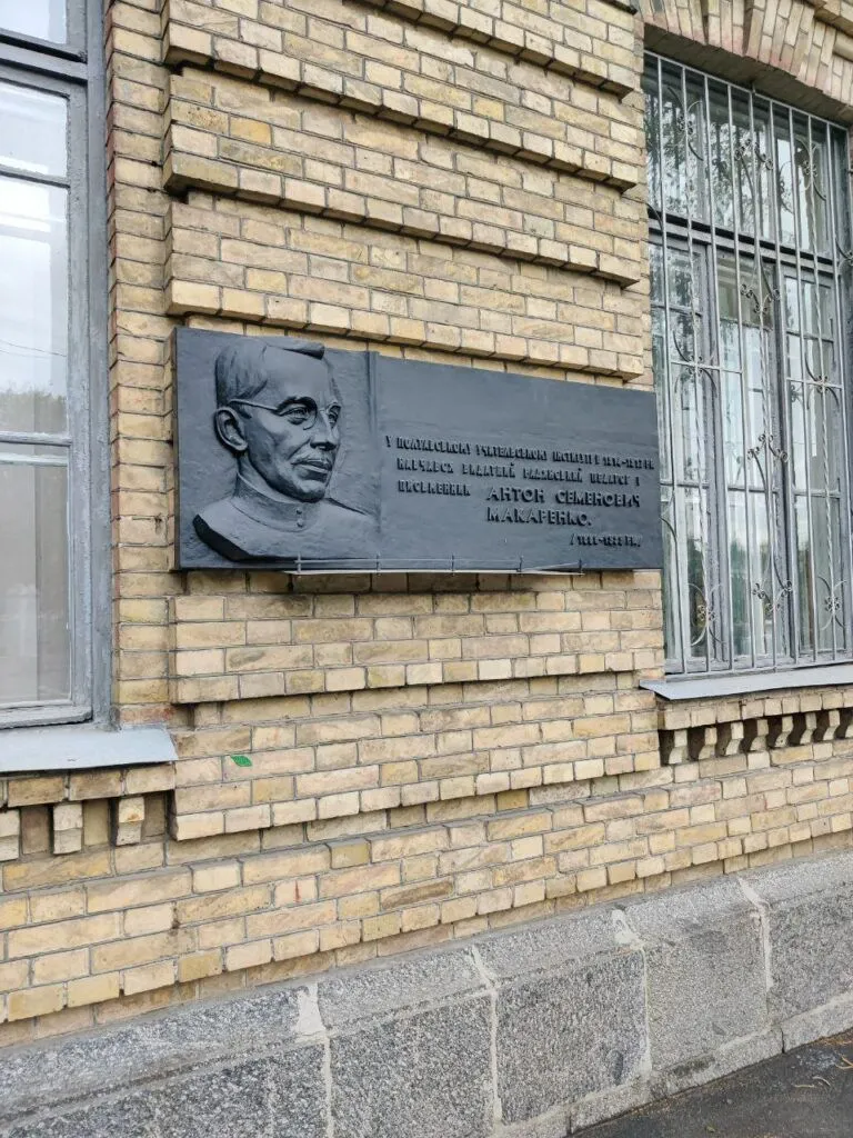 Пам’ятна дошка Антону Макаренку на фасаді ПНПУ. Фото з телеграм-каналу проєкту «Деколонізація Україна»