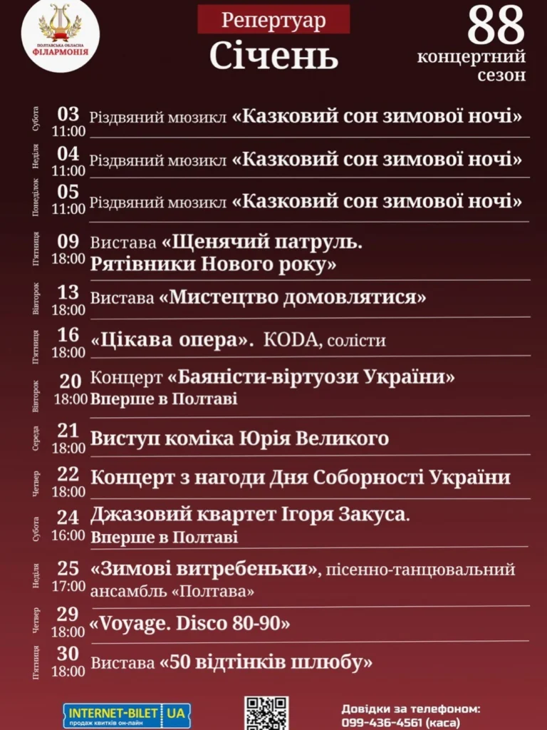 Полтавська обласна філармонія оприлюднила репертуар на січень
