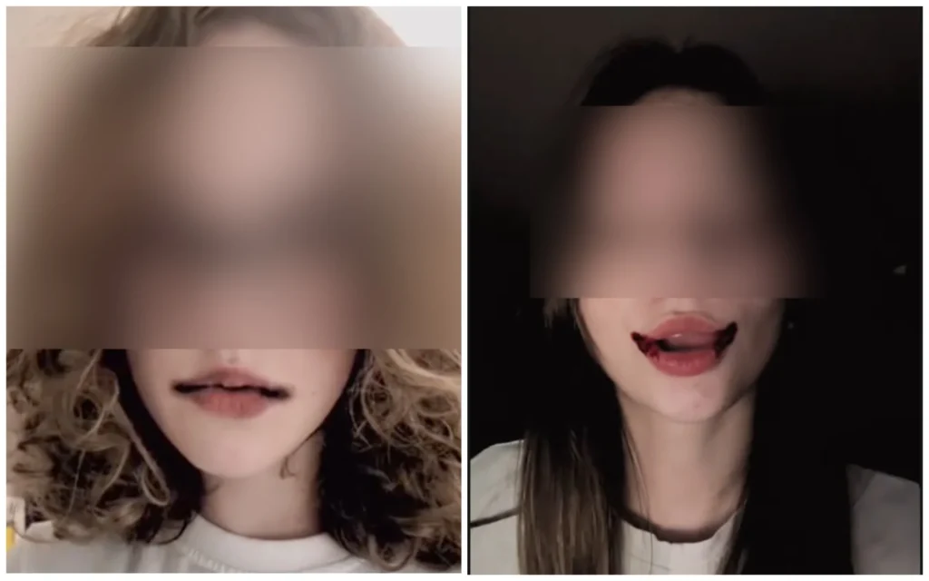 У соцмережах зʼявлялися ролики з ймовірними наслідками підрізання: з пластирами, кровʼю, слідами тощо. Важко зрозуміти, де справжні наслідки самопошкодження, а де макіяж.