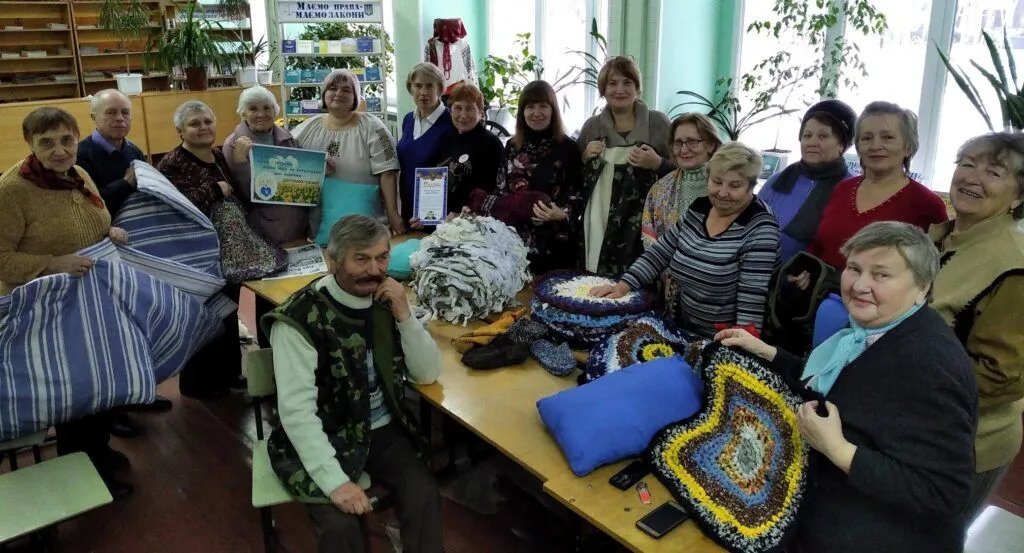 «Волонтерською діяльністю ми з учасницями народознавчого гуртка для дорослих «Українські вечорниці», що працює на базі нашої книгозбірні, почали займатися 2014-го чи 2015 року: створювали обереги, пекли пиріжки, збирали вітамінні набори для наших оборонців тощо, — пригадує завідувачка бібліотеки-філії № 7 Людмила Заливча. — А якось у мене запитали, чи не могли б ми виготовити маскувальні сітки для наших розвідників. Що й казати, на ту пору необхідними навичками не володіли (щоправда, мали досвід плетіння основи для такої сітки), тож звернулися по допомогу до «Полтавського батальйону небайдужих», і волонтерка Тетяна Сігіда із задоволенням провела для нас майстер-клас. Так у квітні 2017 року розпочалася наша «епопея» з виготовлення маскувальних сіток».