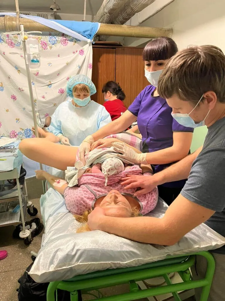 Жінка народила дитину в укритті Кременчуцького перинатального центру 28 лютого 2022 року. Фото зі сторінки закладу у фейсбуці