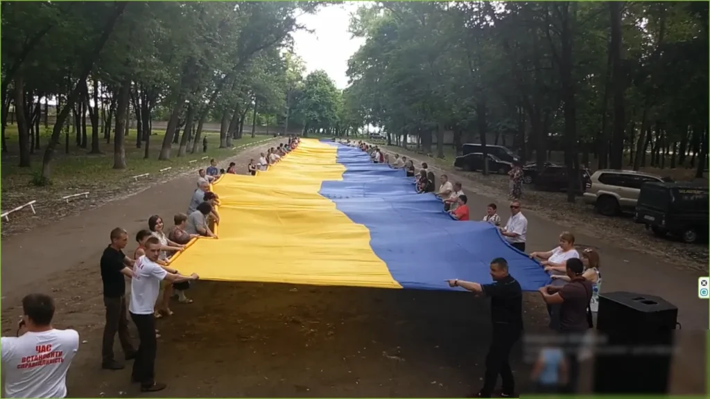 У червні 2017 року в Покровську розгорнули найбільший у світі прапор України, занесений до Книги рекордів Гіннеса. Його площа становила 2400 квадратних метрів (40 на 60 метрів), а вага – 120 кілограмів. Його розгортали до Дня Конституції України, що символізувало єдність Донбасу з усією державою. Фото: ddk.dn.ua