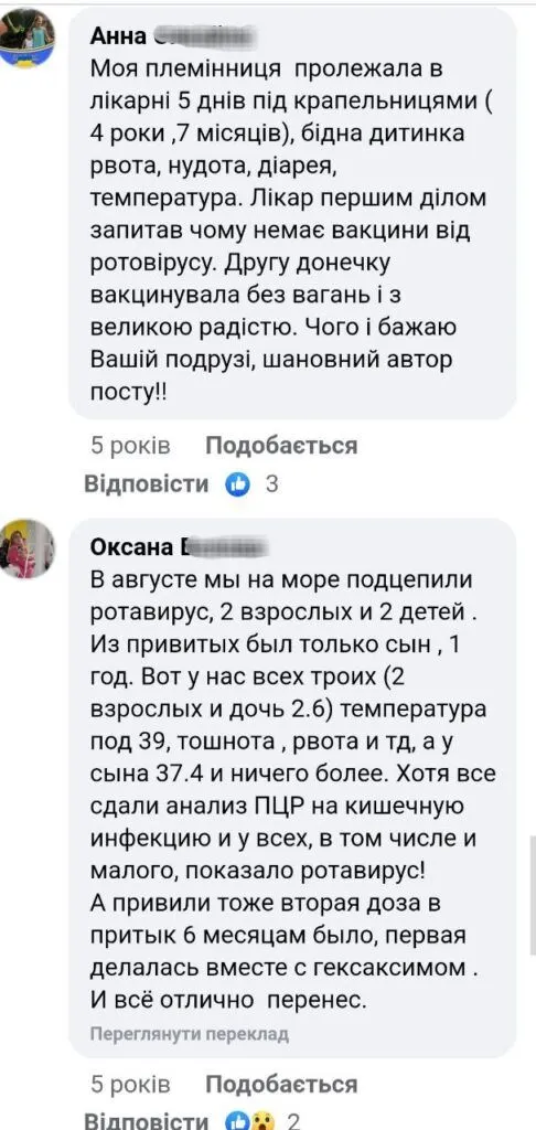 Обговорення щеплення від ротавірусу в одній з фейсбук-спільнот