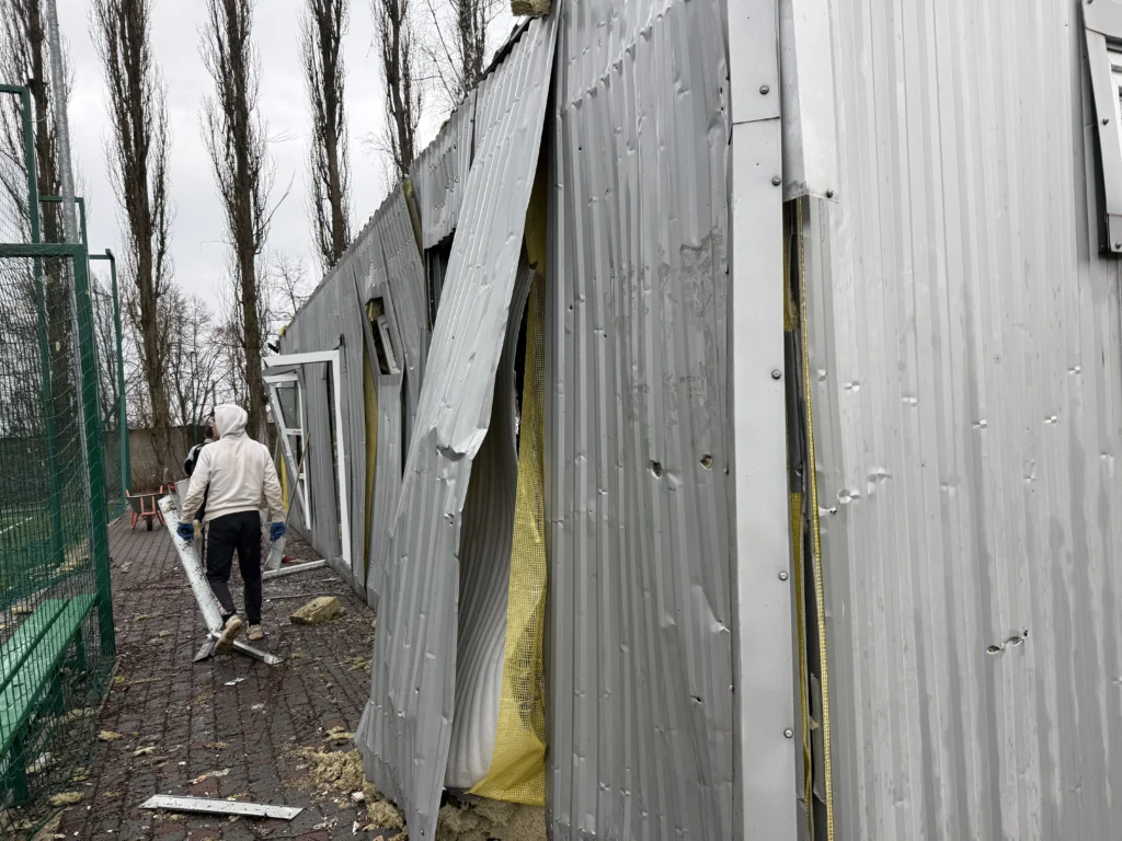 Власник і засновник футбольної школи Дмитро Мілько, вихованці якої тренувалися на цьому стадіоні, стоїть поблизу майданчика та розмовляє по телефону – вирішує питання про прибирання території та перших дій для відновлення «ГРЛ-Арени». Каже, першим, хто побачив «прильот», був охоронець, який унаслідок удару отримав поранення.