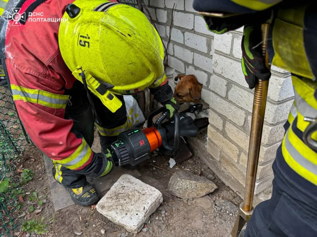 Як повідомили у пресслужбі Головного управління Державної служби з надзвичайних ситуацій у Полтавській області, тварина провела в пастці всю ніч і скавчала, однак люди не змогли самостійно допомогти через сильне затиснення.