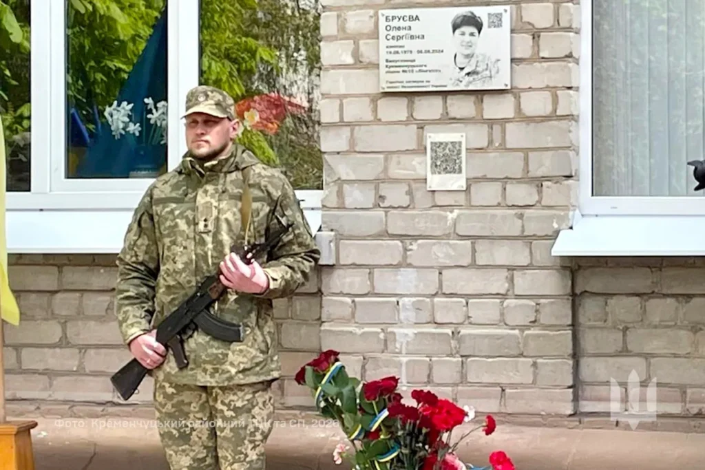 На фасаді кременчуцького ліцею встановили меморіальну дошку полеглій внаслідок російського удару прикордонниці Олені Бруєвій.