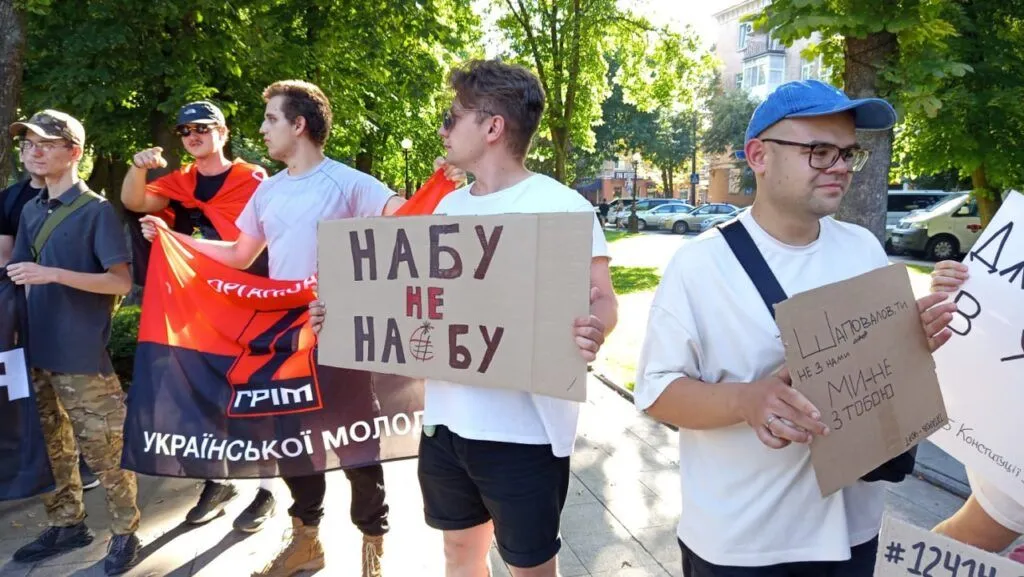 Кременчуківці вийшли протестувати проти закону № 12414, який підпорядкував Національне антикорупційне бюро України та Спеціалізовану антикорупційну прокуратуру Генеральному прокуророві.