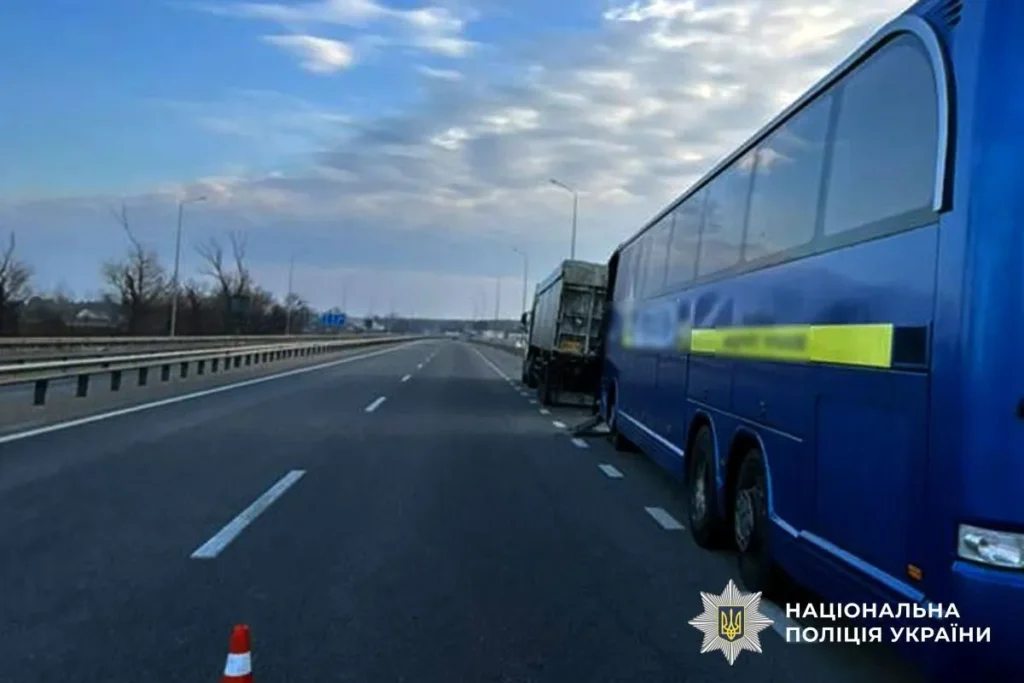 У Миргородському районі на трасі Київ–Харків 27 березня сталася ДТП за участі автобуса та вантажівки, унаслідок якої травмувався водій автобуса.