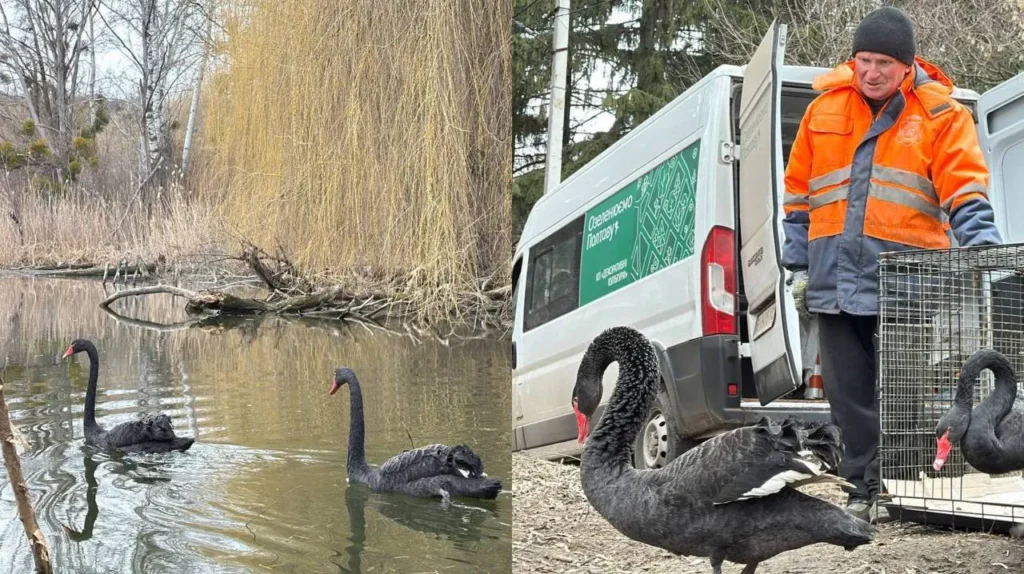 Сьогодні у міському парку «Дендропарк» у водойми випустили дві пари лебедів та трьох качок. Птахи добре почуваються, активні та вже заходять у воду.