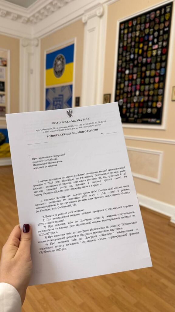 19 листопада о 10:00 відбудеться позачергова сесія Полтавської міської ради. Засідання проведуть у режимі відеоконференції.