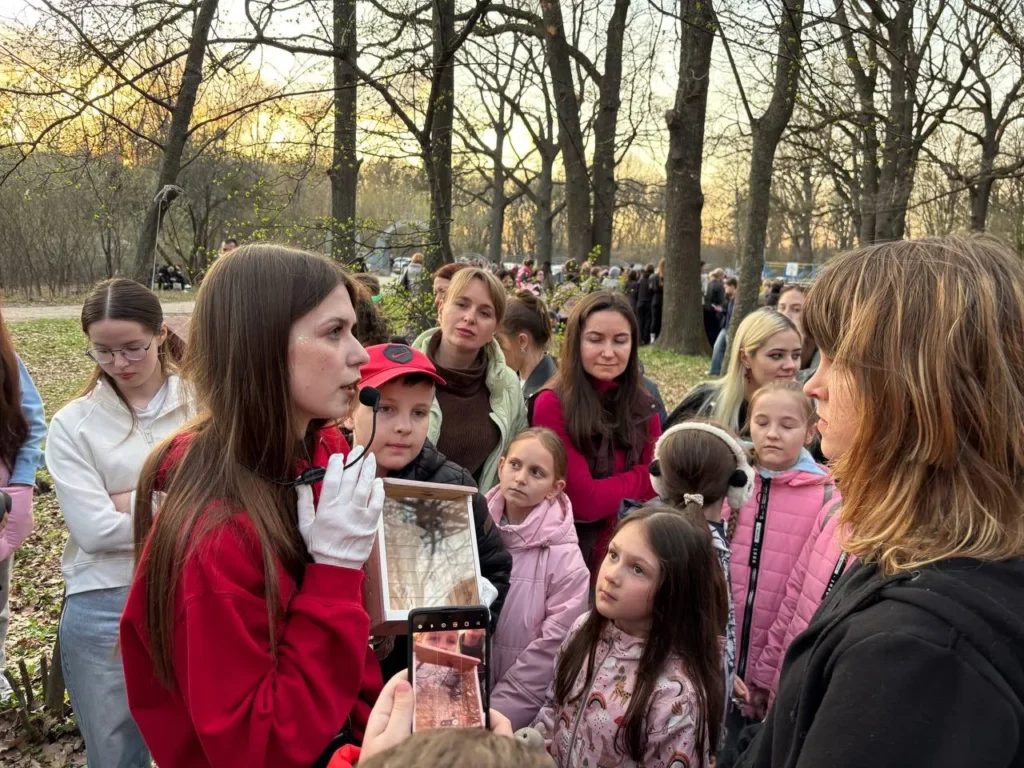 Спочатку представники Bat-центру провели лекцію для відвідувачів, де розповіли про кажанів, їхні особливості, різновиди та цікаві факти. Наприклад, що не всі кажани обов’язково мають бути головою донизу, більшості з них немає різниці. Натомість для рукокрилих виду Підковик малий через їхню фізіологію життєво необхідно перебувати головою донизу.