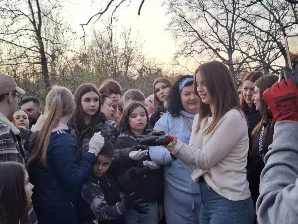 «Нам надіслали інформацію, як їх виходити, як подивитися чи він цілий, чи не поранений. Потім годували борошняними черв’ячками, апетит у них бездоганний. Вигодували, він набрав масу, спав у холодильнику в коробочці, тому що їм потрібно зберігати енергію».