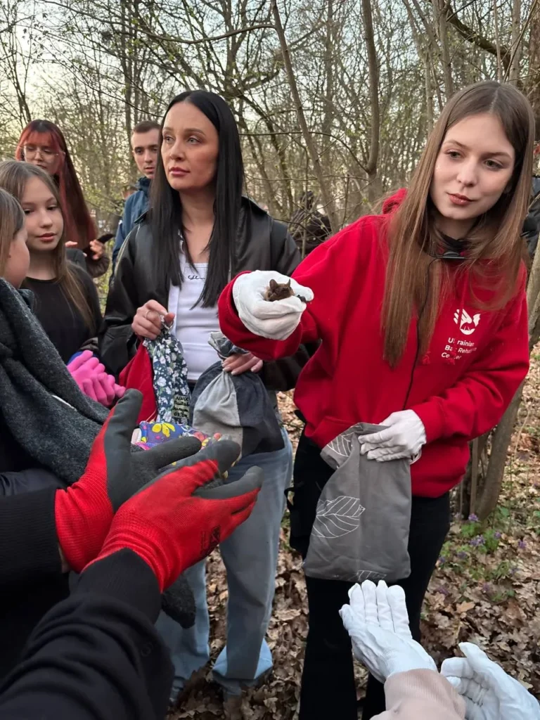 Також провели інструктаж для тих, хто хотів власноруч долучитися до випуску рукокрилих. Для цього необхідно було скористатися рукавичками, щоб вберегтися від можливих укусів, адже це дикі тварини, а деякі види потенційно можуть переносити сказ.