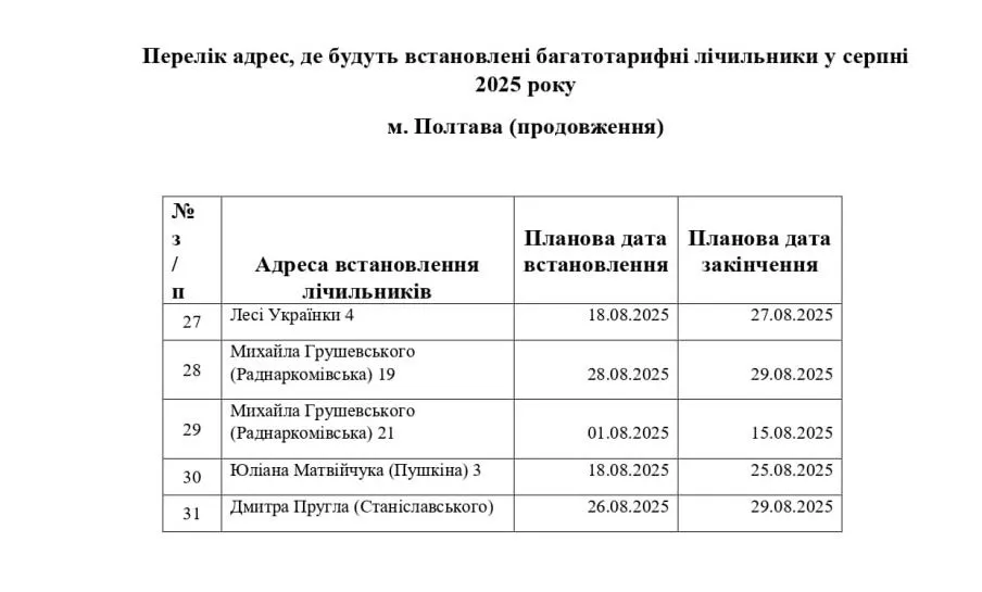 Оприлюднили перелік будинків у Полтаві та Кременчуці, в яких протягом місяця планують встановити багатотарифні лічильники електроенергії.