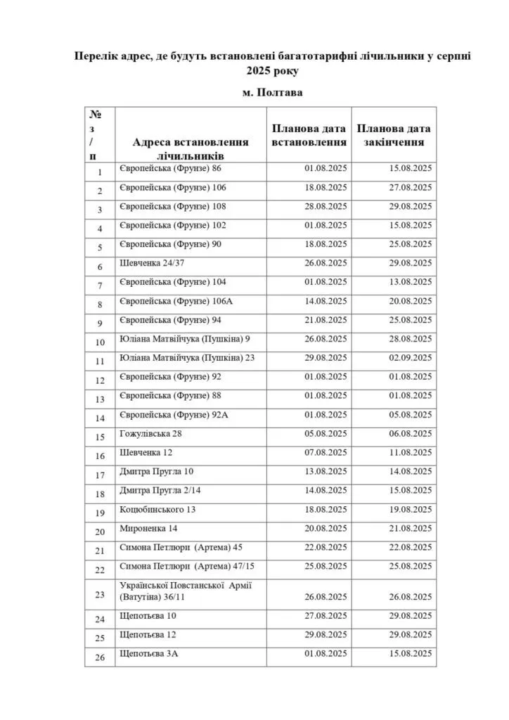 Протягом липня в Полтаві встановили 904 такі лічильники, у Кременчуці – 1 445.