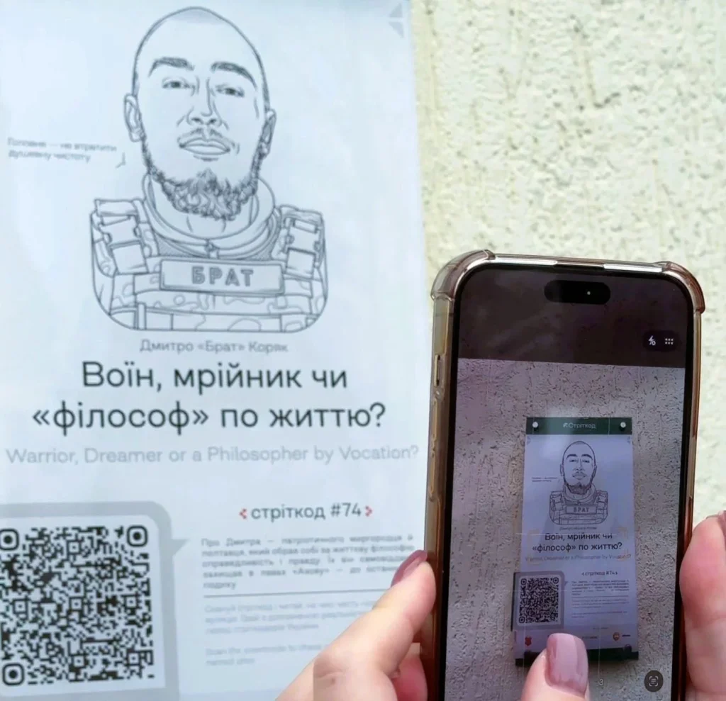 На табличці є QR-код з посиланням на сторінку, де розміщена інформація про захисника. Інформаційну табличку встановили в рамках проєкту «Стріткод» за фінансової підтримки ГО «Історична платформа» та ГО «ПроУрбан».
