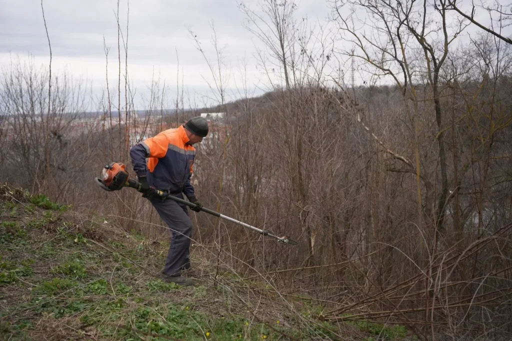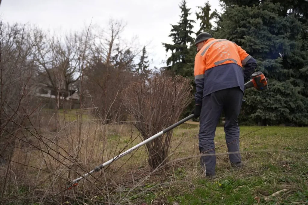 У зеленій зоні біля Білої альтанки комунальники розчищають територію: видаляють самосів, обрізають кущі та впорядковують насадження. Паралельно у громаді триває формування крон дерев.
