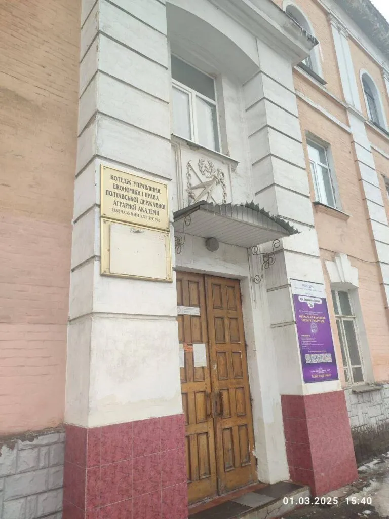 Із фасаду будівлі навчального корпусу коледжу управління економіки і права Полтавської державної аграрної академії демонтували герб СРСР.