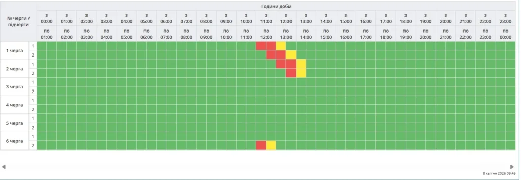 Як повідомили на сторінці «Полтаваобленерго», графік діятиме 8 квітня з 11:00 до 13:00 в обсязі однієї черги.