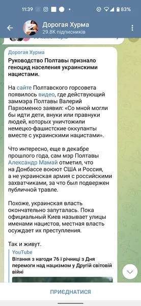 Відео є тогорічним привітанням посадовця до Дня Перемоги. Проте вже сьогодні його активно використовує ворог пишучи, що начебто керівництво Полтави визнало геноцид населення українськими нацистами. Також через це російські засоби зв’язку пишуть, що на території України йде війна США та росії.