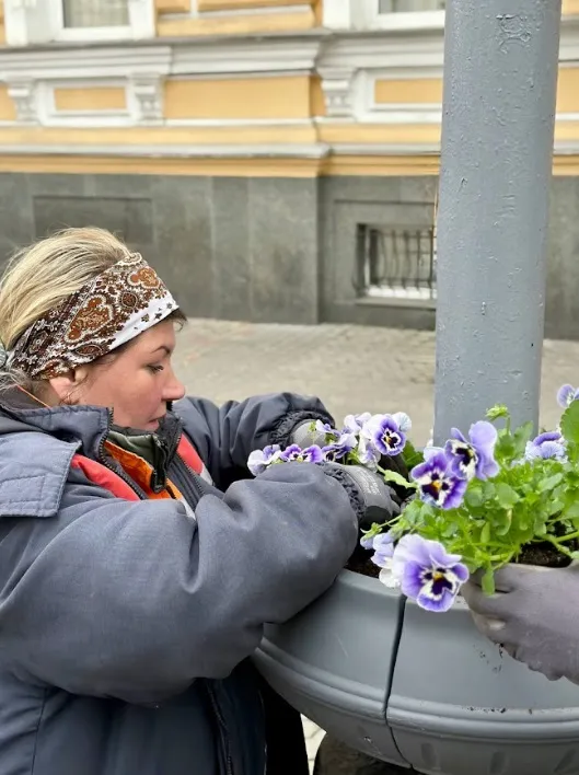 Працівники «Декоративних культур» озеленюють центр Полтави. Фото: УЖКГ