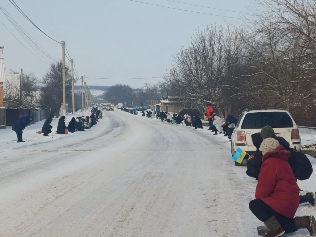 Люди зустрічають кортеж з тілом великобагачанця