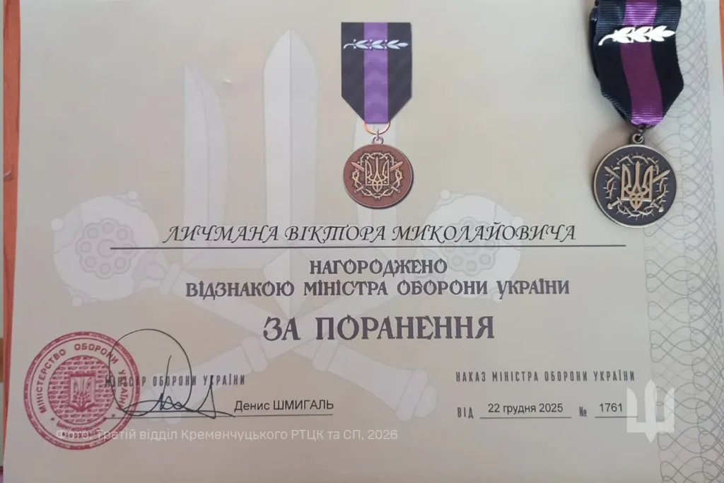 Відомчу відзнаку Міністерства оборони України «За поранення» вручили звільненому з військової служби за станом здоров’я ветерану – солдату Личману Віктору Миколайовичу.