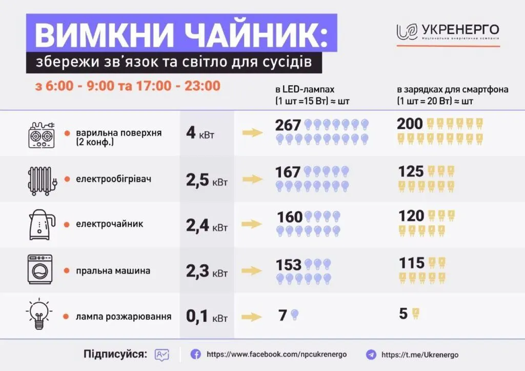 Окрім цього, українців просять відкоригувати свій графік користування енергомісткими приладами в певні періоди доби. Це допоможе енергетикам збалансувати енергосистему в пікові години та швидше відновлювати мережі після російських атак.