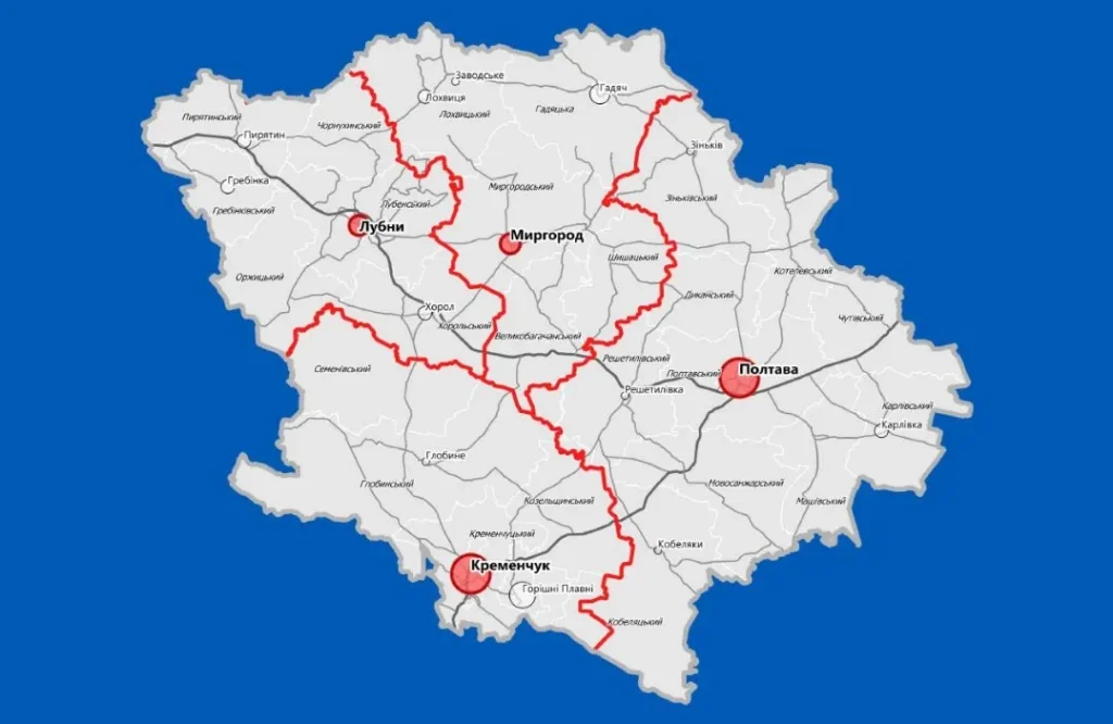 Чотири райони Полтавщини. Зображення: poltava.to