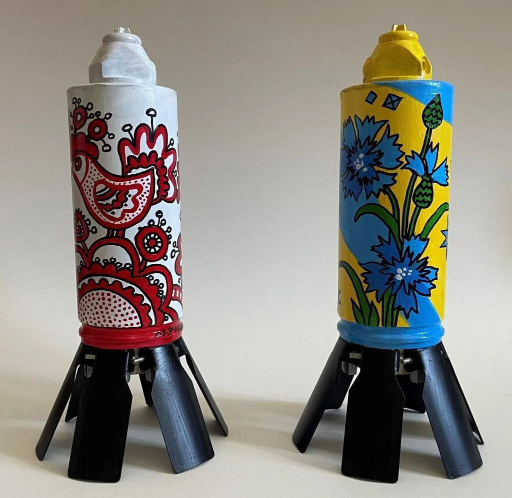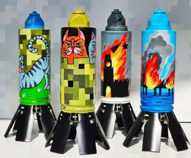 «Знаю, що дехто з колег, розписуючи засоби ураження, відчуває страх, неприйняття, відторгнення. А для мене це все одно, що береш чисте полотно й починаєш малювати, — зізнається пані Лариса. — Я взагалі не думаю про те, що маю справу зі страшними речами. І після мого розпису вони, як правило, стають геть безневинними (за винятком хіба що тих об’єктів, при розписуванні яких реалізувала синові ідеї). До речі, малюнок акриловими фарбами на металевій поверхні стійкий до води, впливу навколишнього середовища. Що ж до утилітарності таких предметів, то, відкрутивши верхню частину, їх можна використовувати як вазу для засушених квітів, підсвічник або підставку для олівців. Хоч загалом, думаю, коли врешті-решт закінчиться розв’язана росією війна проти України, вони стануть дуже оригінальним сувеніром, таким собі відлунням цієї жорстокої бійні, нагадуванням про те, які нелегкі часи ми пережили».