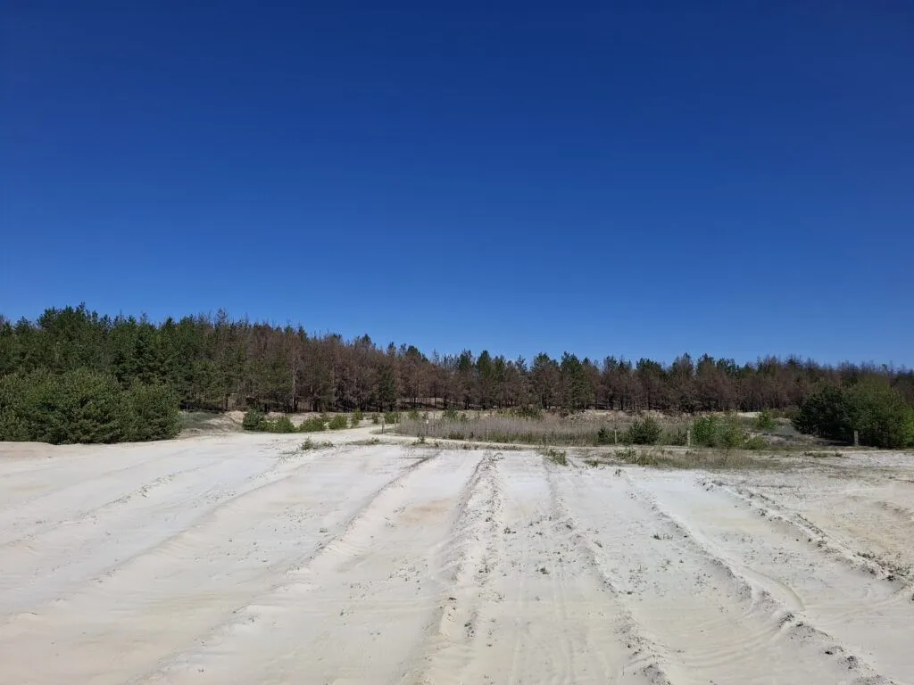 Ще через кілька кілометрів – кар’єр із видобутку піску біля села Собківка, там виникли ставки, та в народі їх називають блакитними озерами. Бачимо, що ліси навколо них також чорніють.
