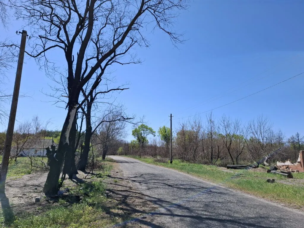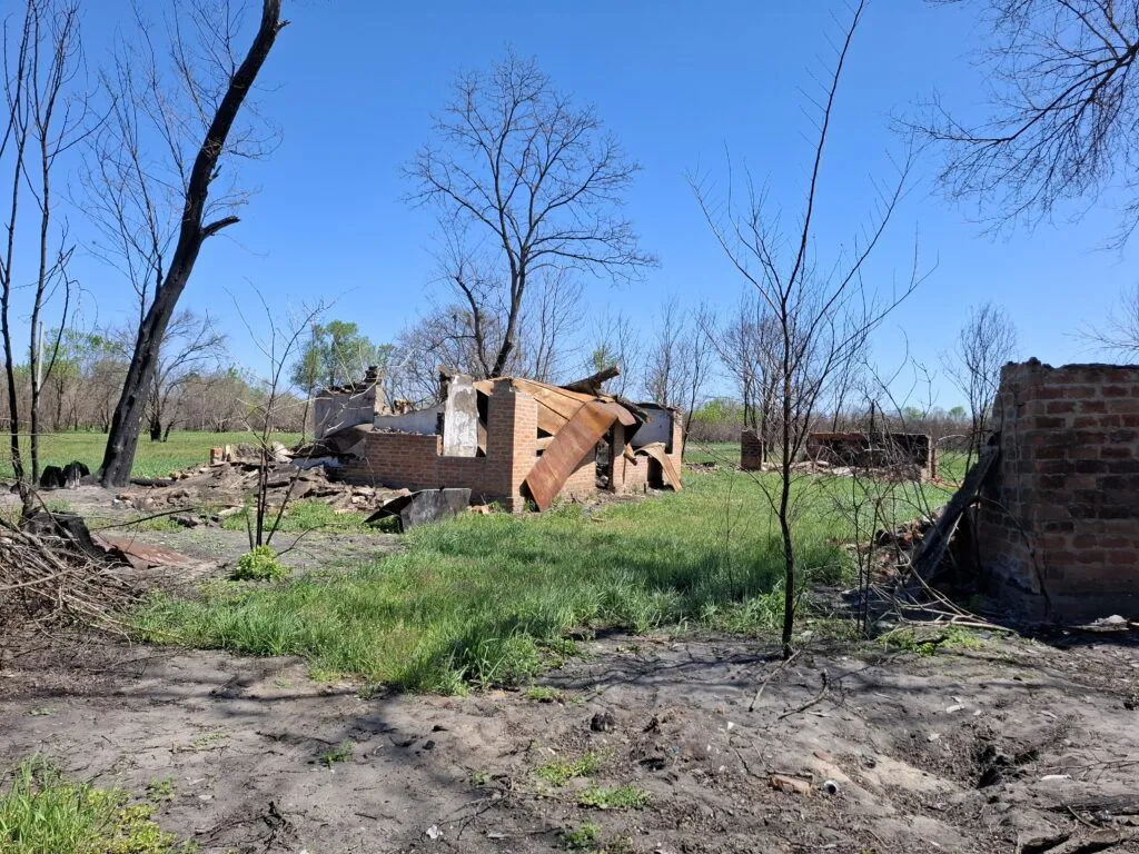 Повертаючись назад, ми зупиняємося біля знищених вогнем будинків у селі Балівка.