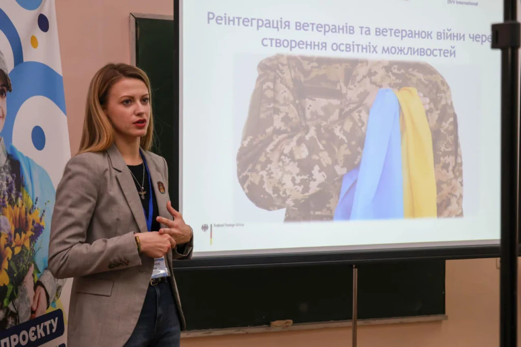 Через кілька місяців після втрати Ліля очолила проєкт реінтеграції ветеранів через освітні можливості, а згодом долучилася й до команди полтавського ветеранського центру. Я поцікавилася, чи розглядала вона інші варіанти для роботи, яка не повʼязана з ветеранами.