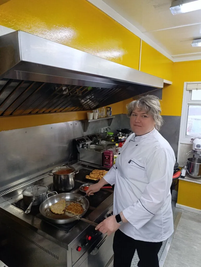 Кухарка зазначає, що інгредієнти для приготування їжі не відрізняються великою різноманітністю, але за ці пів року готували суші, бургери, шаурму, різноманітні страви з картоплі, пироги.